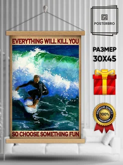Постер на стену интерьерный в рамке "Сёрфинг" 30х45