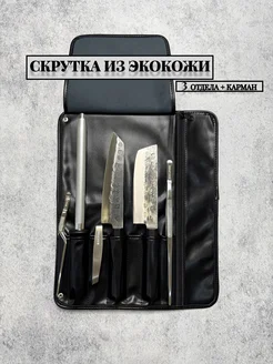 Скрутка из экокожи для ножей и кухонных инструментов черная