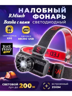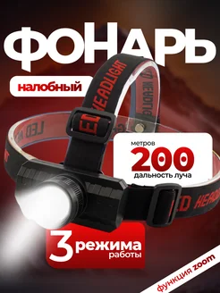 Налобный фонарь аккумуляторный для взрослых и детей с зумом