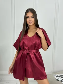 Комплект халат домашний с сорочкой шелковый