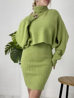 Костюм трикотажный с платьем и кофтой
