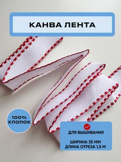 Канва лента для вышивания 3,5 см х 1,5 м с красной каймой