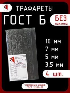 Трафареты ГОСТ Б без наклона, чертежный шрифт, набор 4 шт