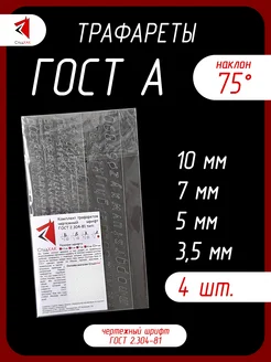 Трафареты ГОСТ А с наклоном 75, чертежный шрифт, набор 4 шт
