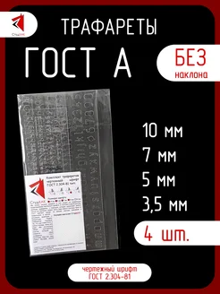 Трафареты ГОСТ А без наклона, чертежный шрифт, набор 4 шт
