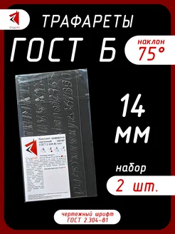 Трафареты 14 мм ГОСТ Б с наклоном 75, чертежный шрифт, 2 шт