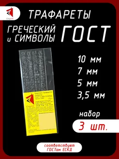 Трафареты Греческий и Символы ГОСТ, чертежный шрифт, 3 шт