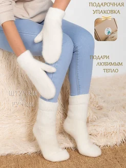 Подарочный набор варежки и носки вязаные теплые зимние