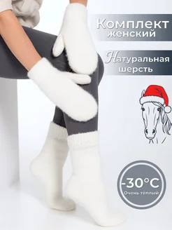 Комплект носки и варежки шерстяные вязаные теплые