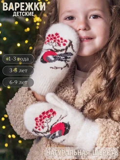 Варежки зимние шерстяные вязаные с рисунком