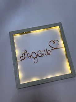 Именная рамка Ночник вязаное имя Адель с сердечком