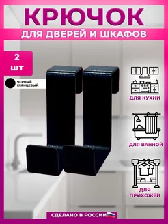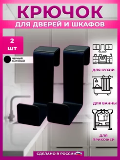 Крючок-вешалка для дверей и шкафов черный металлический 2 шт