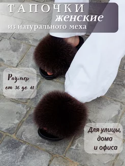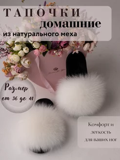Тапочки домашние женские пушистые с мехом песца
