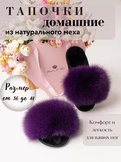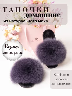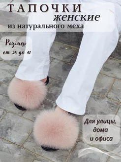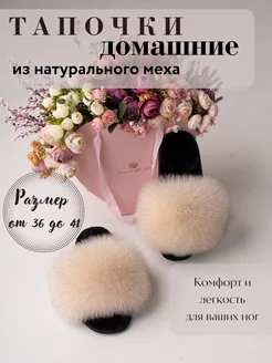 Тапочки домашние женские пушистые с мехом песца 210073618