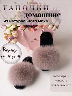 Тапочки домашние пушистые с мехом песца