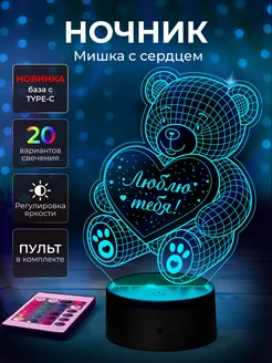 Ночник детский Мишка с сердцем - подарок на день рождения