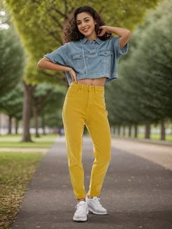 Джинсы бананы с высокой посадкой оверсайз мом прямые