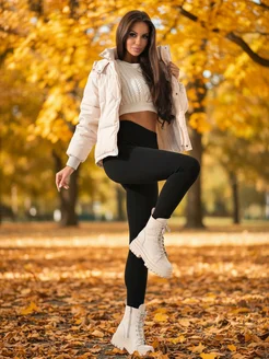 Леггинсы теплые в рубчик на флисе лосины с начесом женские