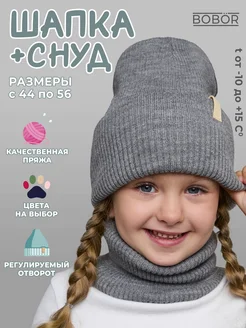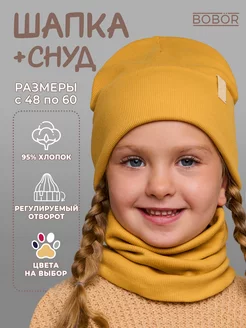 Шапка со снудом в рубчик комплект демисезон трикотажный