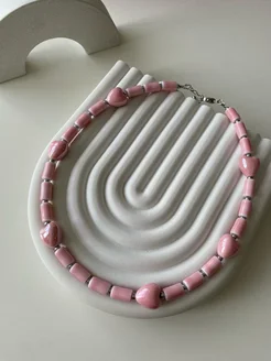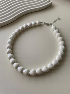 Чокер сердечки из керамики белый