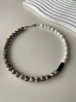Чокер (колье) из яшмы, агата и жемчуга