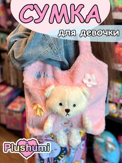 Сумка плюшевая пушистая сумочка игрушка мишка для девочки