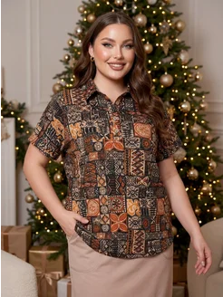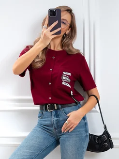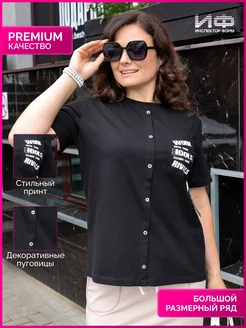 Блузка хлопок короткий рукав удлиненная оверсайз принт