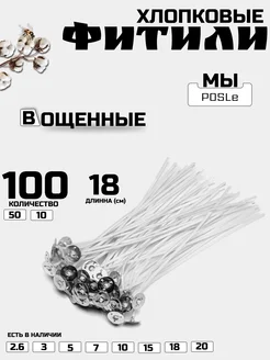 Фитили для свечей хлопковый вощеный с держателем 100 шт