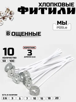 Фитили для свечей хлопковый вощеный с держателем 10 шт