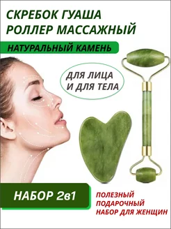 Скребок гуаша для лица роллер массажный набор 2в1