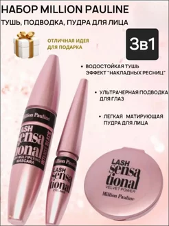 Тушь для ресниц черная подводка+пудра набор