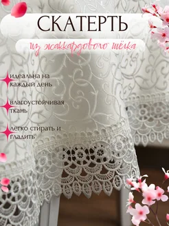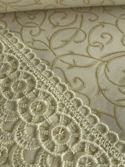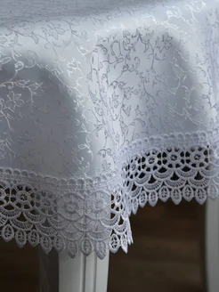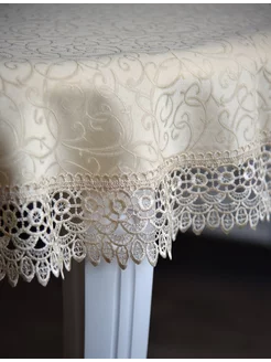 Скатерть тканевая праздничная на стол с кружевом 150х220