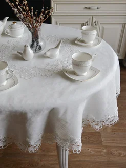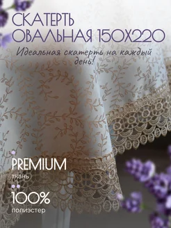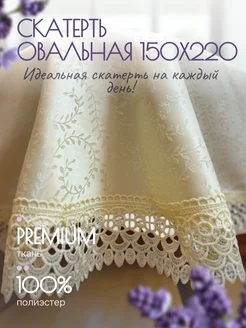 Скатерть тканевая овальная на стол с кружевом 150*220