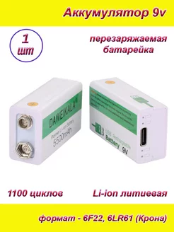 Аккумуляторная батарейка 9v Крона + кабель USB Type-C