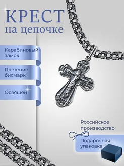 Серебряный крест Спаси и Сохрани с цепочкой. Серебро 925