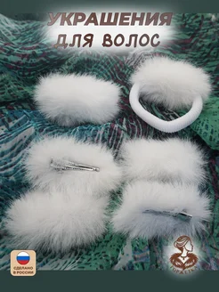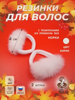 Резинка для волос с украшением из экомеха белого цвета 2 шт