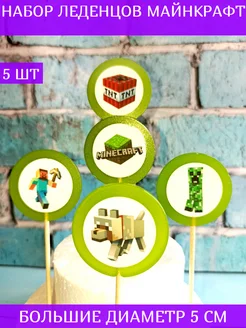 Леденцы на палочке на торт Майнкрафт Minecraft 5 штук