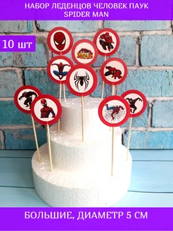 Леденцы на палочке на торт Человек паук Spider man 10 штук