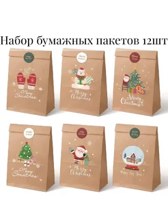 Пакеты новогодние, набор 12 штук, 22х12х8 см, крафт