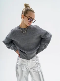 Свитер желтый лимонный вязаный укороченный оверсайз