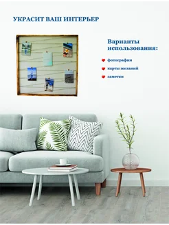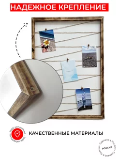 Большая деревянная Рамка для фото с прищепками мудборд 50*70
