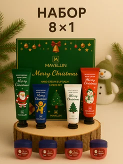 Новогодний набор крем-гель для рук и бальзам для губ 8 в 1