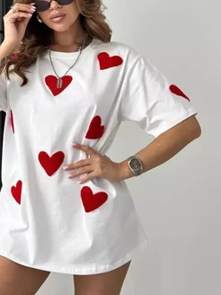 футболка белая оверсайз объемные 3D сердечки