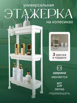 Этажерка раздвижная узкая для кухни, для ванной, 3 полки