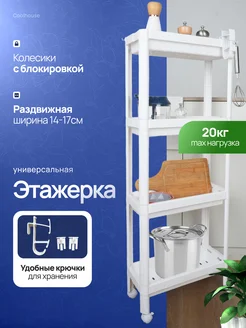Этажерка раздвижная узкая для кухни, для ванной, 4 полки