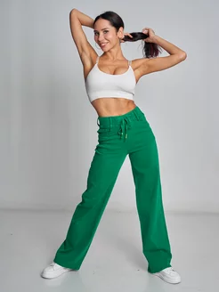 Джинсы на резинке с высокой посадкой широкие