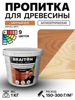 Пропитка Braiton для древесины лессирующая 1 кг. Светлый дуб