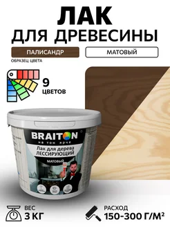 Лак Braiton для дерева лессирующий матовый 3 кг. Палисандр