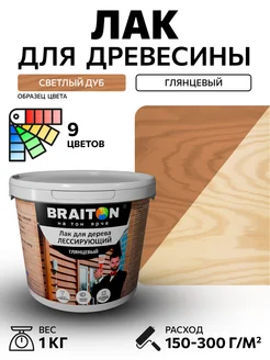 Лак Braiton для дерева лессирующий глянцевый 1кг Дуб светлый
