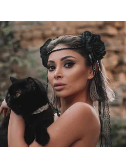 Ободок для волос Черная роза Готический Хеллоуин Фотосессия